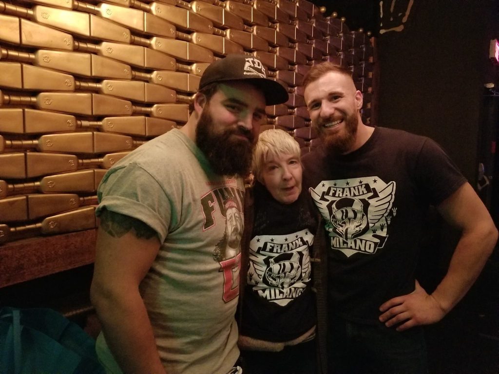 Et là Benjamin Tull arrive contre Milano. Je me suis dit: « Voyons donc, Milano gagnera pas. » Bon! Milano, une fois dans l’arène de lutte, il m’envoie un bec. Heille là j’ai capoté! Là je suis devenu hystérique! Et là… Benjamin Tull a perdu et Milano a gagné!