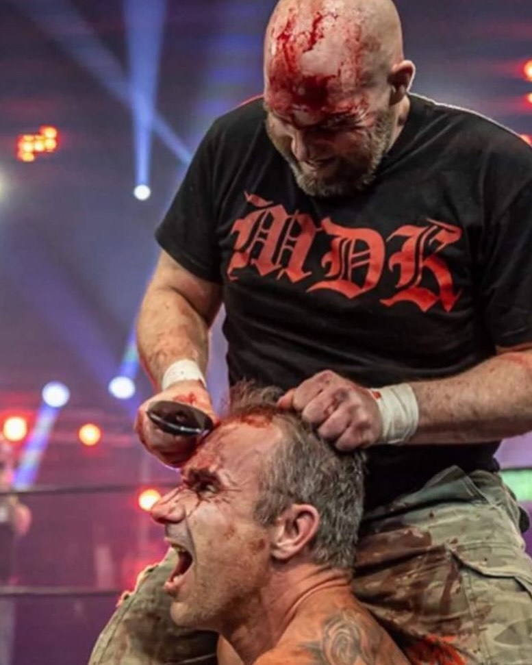 Et là Jonathan, il y a eu un combat avec des échelles! Il y avait des tables! Là ils avaient le droit d’aller en bas. C’est un combat que le premier qui monte dans l’échelle et pogne la ceinture y gagne. Pis là tout le monde s’est essayé! SeXXXy Eddé! Pas été capable de le faire. Les autres non plus, pas capable de faire ça.