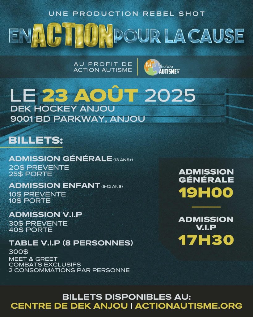 Le 23 août, la légendaire Christiane Drogue et Jonathan Divertissement seront au Dek Hockey de Anjou pour assister à un gala de lutte dont tous les profits iront à Action Autisme!