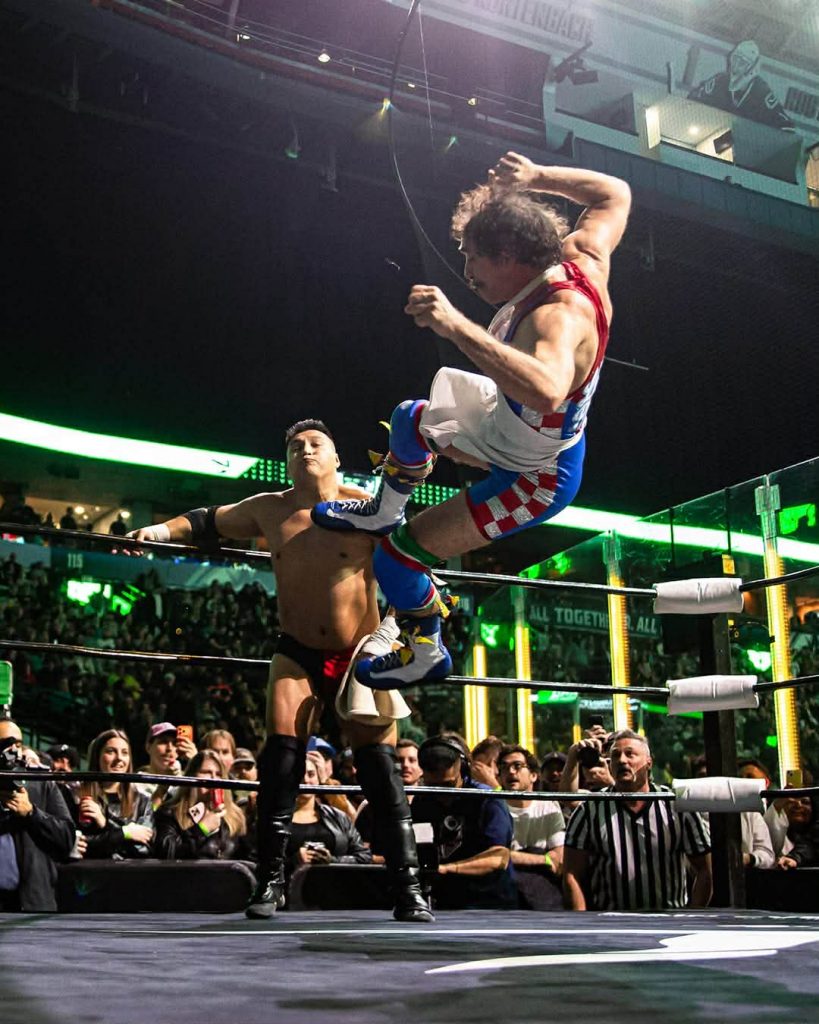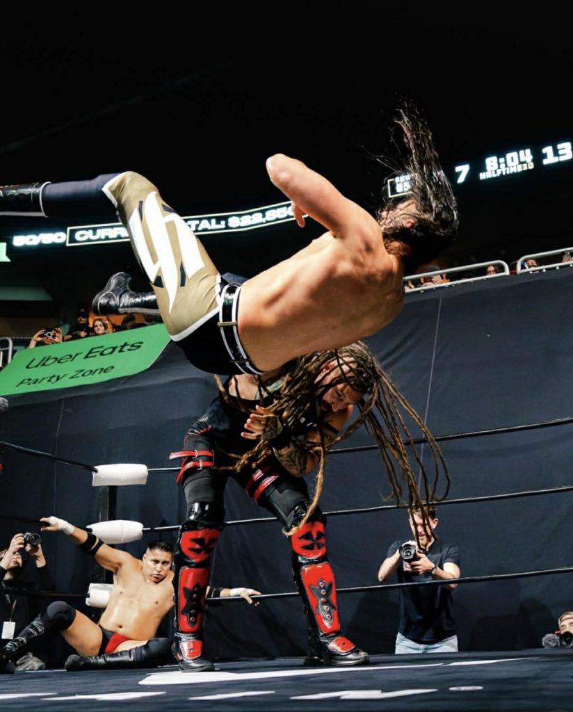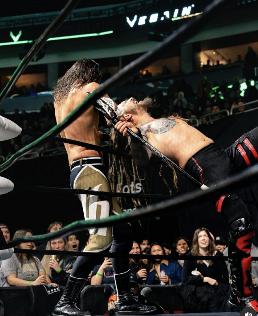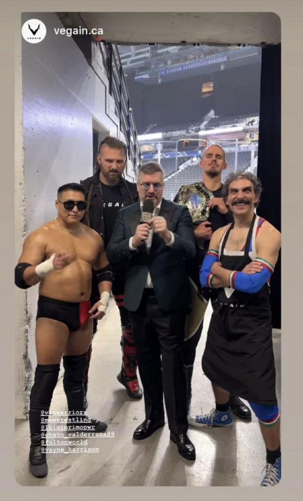 Nic: C’était appelé Wrestling Night, et la soirée était commanditée par VEGAIN. VEGAIN est un commanditaire des Vancouver Warriors, et chaque partenaire reçoit une soirée thématique — par exemple Country Night, Disco Night, Rock and Roll Night ou Dog Night.