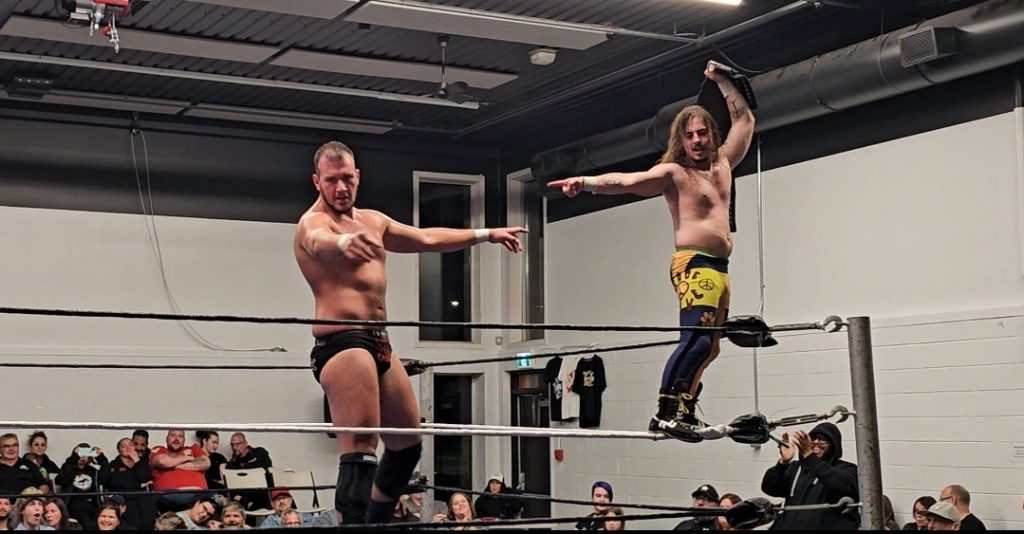 Alors qu’Aleksander attend de voir ce que Jayden et X-Plicit préparent, l’arbitre spécial Bernard Paquette vient lui donner un coup de poing dans les billes! Brayden s’écroule.