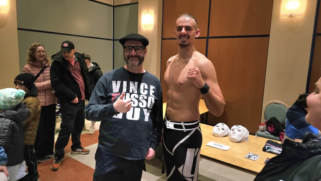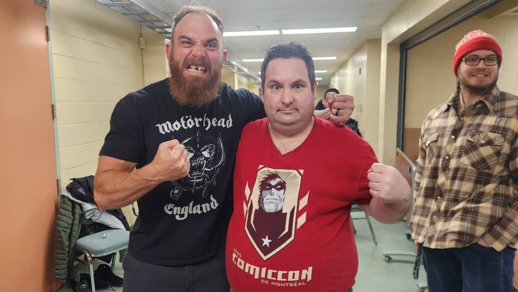 Après le gala, l’un des plus grand fanatique de lutte québécoise, mon vieux copain Alain Pilon, a eu la chance de de faire photographier avec Timothy!