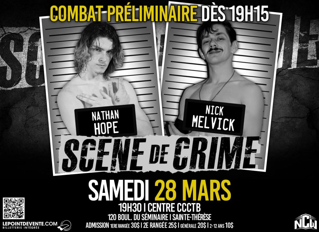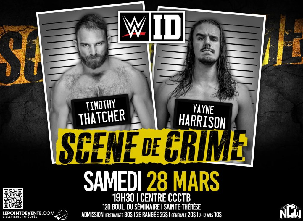 Samedi le 28 mars, on a eu droit à une salle comble pour assister à Scène de Crime de la NCW. Jonathan Divertissement avait très hâte de voir le furieux Timothy Thatcher en action face au tout premier québécois du programme WWE ID Yaynnne Harrisonnn!