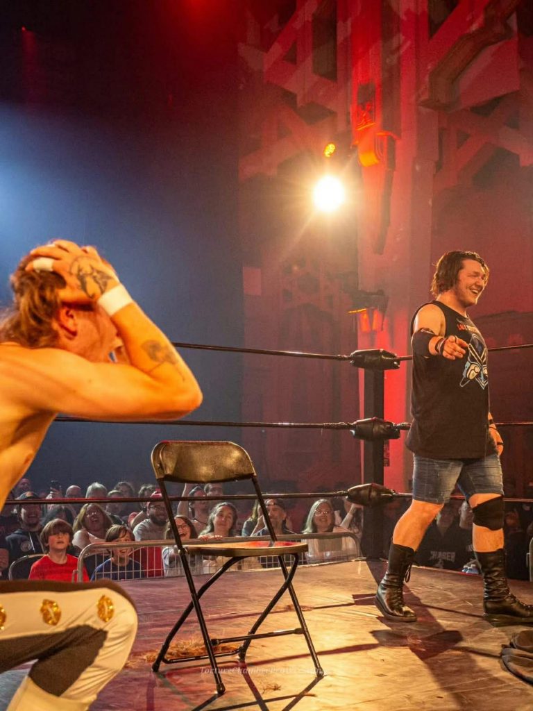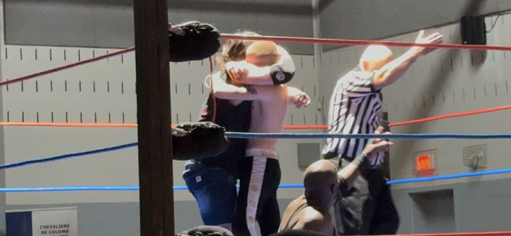 Loïc: Merci ! Oui je crois j’ai jamais été nerveux de même je suis pas un gars stressé mais quand ton rêve devient réalité c’est autre chose. J’ai eu la chance de lutter contre mon chum donc la confiance était là et quand la cloche a sonné le stress s’est dissipé. Ça faisait seulement 9 mois que je m’entrainais à Torture Chamber et Dru m’a donné le feu vert donc je savais que j’étais prêt. On a eu un match de 15 minutes au lieu de 6 donc on a dû improviser mais encore aujourd’hui mon match préféré et le plus marquant. On a bien démontré qui était le face et le heel et je crois c’est ça qui a rendu le match captivant. Le sentiment d’après match était juste incroyable surtout en sachant qu’on venait de commencer quelque chose de gros on était très fier.