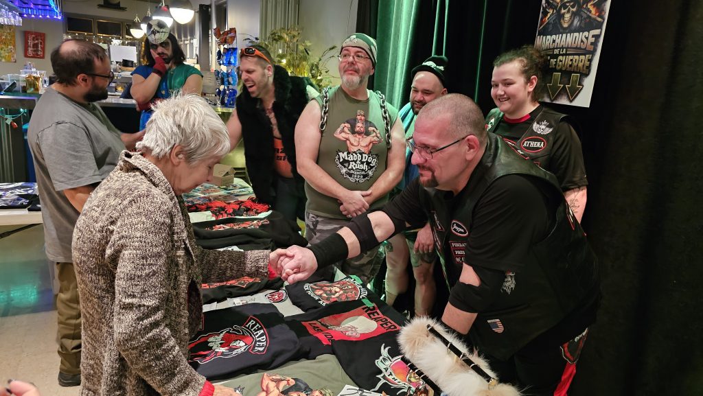C’est vaste et ça aurait pu avoir l’air fou si le public n’avait pas répondu à l’appel. Heureusement, ils étaient plus d’une centaine à acclamer le plus grand journaliste de lutte au Québec!
