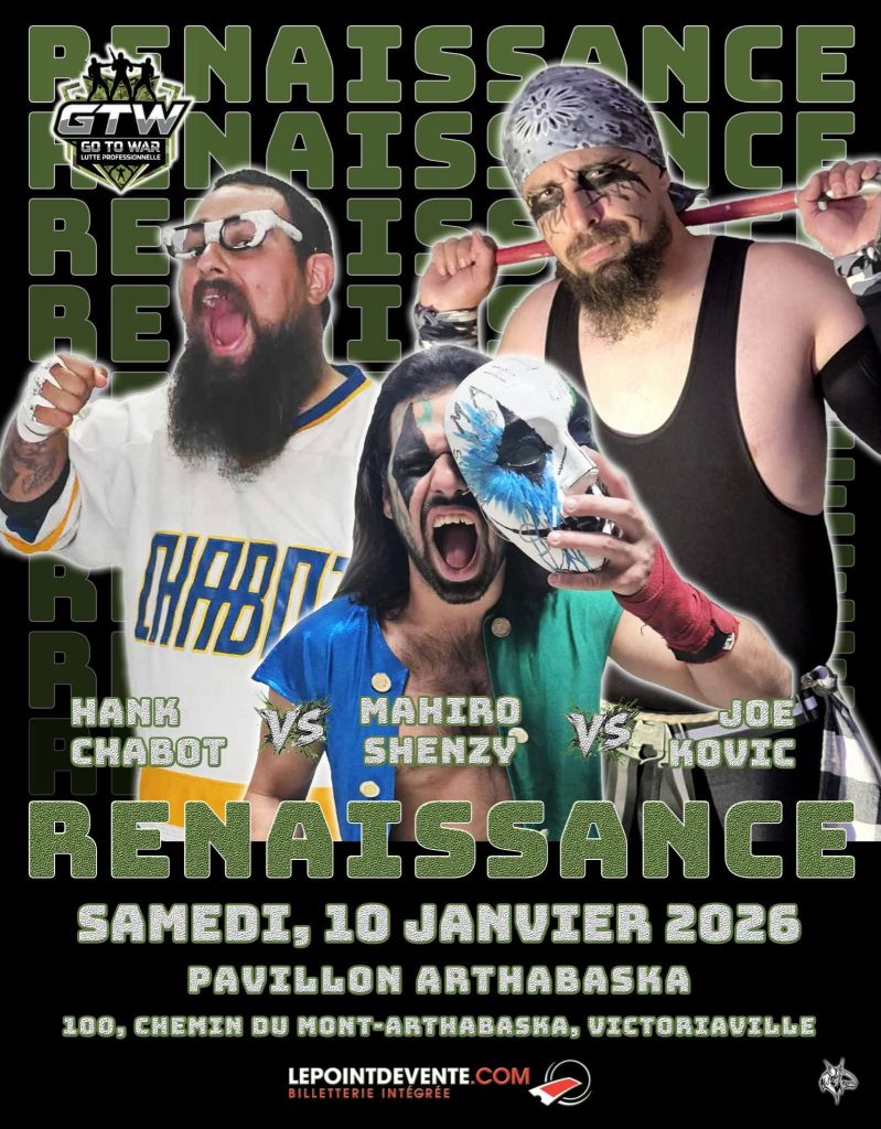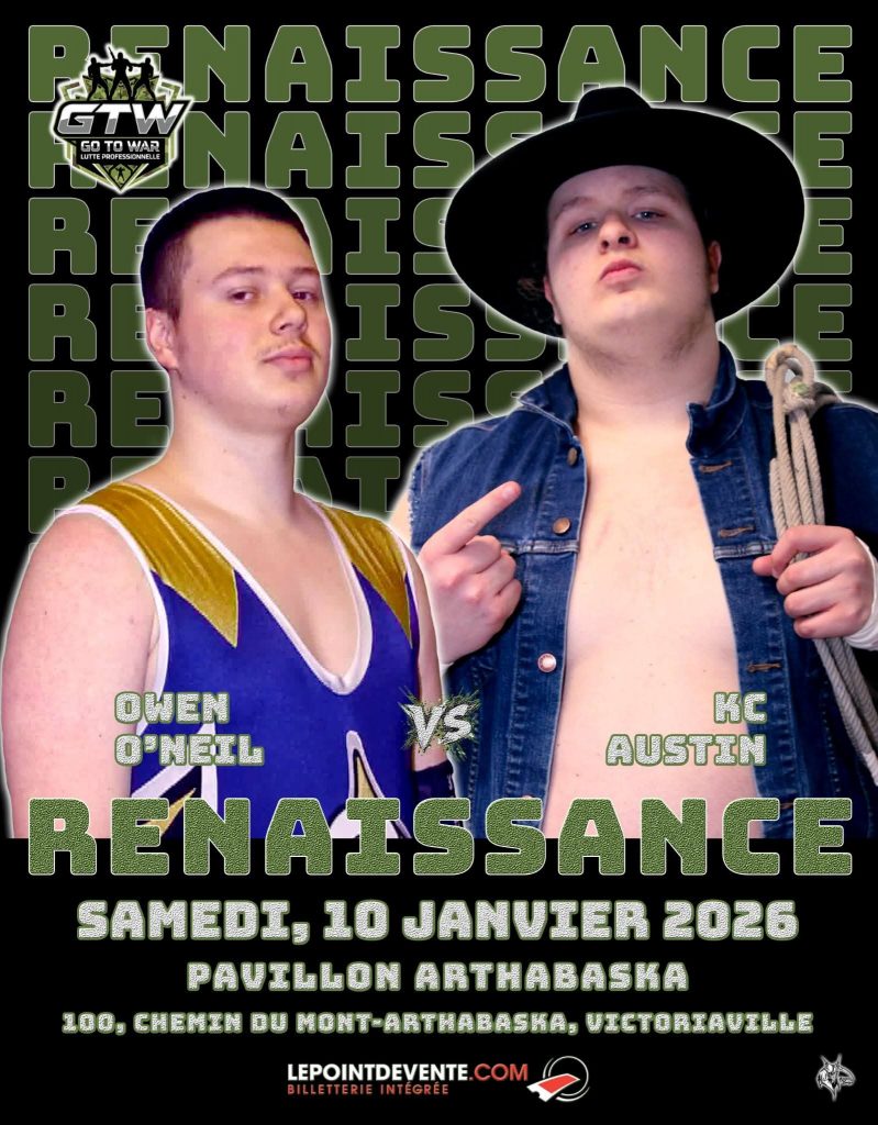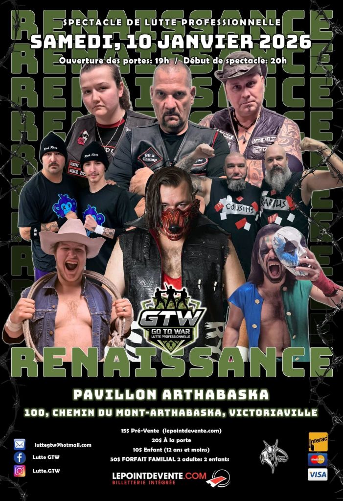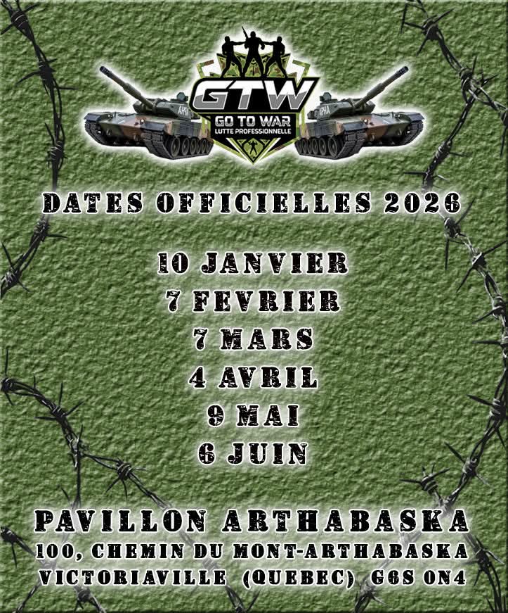 Le prochain gala aura lieu le 7 février, toujours à Victoriaville, et s’intitule: FAITES L’AMOUR, PAS LA GUERRE! Il s’agira d’un gala qui reviendra annuellement et qui mettra en vedette la Roue GTW qui décidera des stipulations de chaque match!