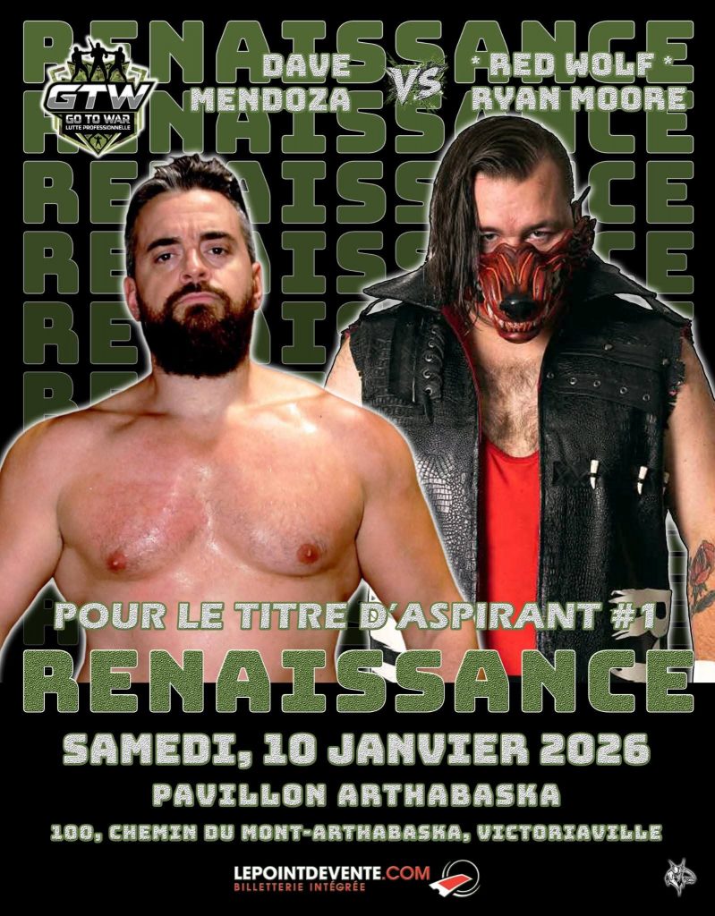 DELICIOUS DAVE MENDOZA contre RED WOLF RYAN MOORE pour le titre d’ASPIRANT #1 au futur CHAMPIONNAT de la GTW